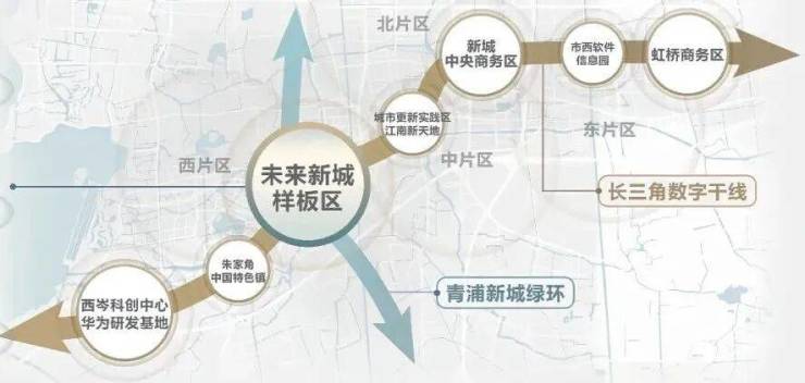 以上海青浦为起点的"长三角数字干线",沿G50高速构建万亿级数字产业生态,涵盖西岑科创中心、市西软件信息园、虹桥北斗产业园、张江科学城等。