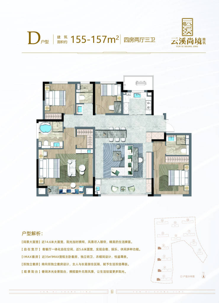 建面 157㎡3 居,总价 220.0 - 250.0 万,分布于 11# 等楼栋,大空间、大格局,满足您对品质生活的追求,彰显尊贵身份。