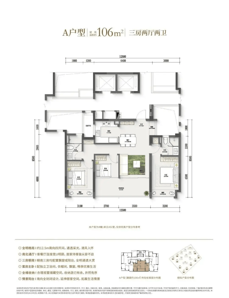 109㎡ 350–370万元 32,000–34,000元/㎡ 边厅设计,6米面宽可包阳台,通风采光极佳
