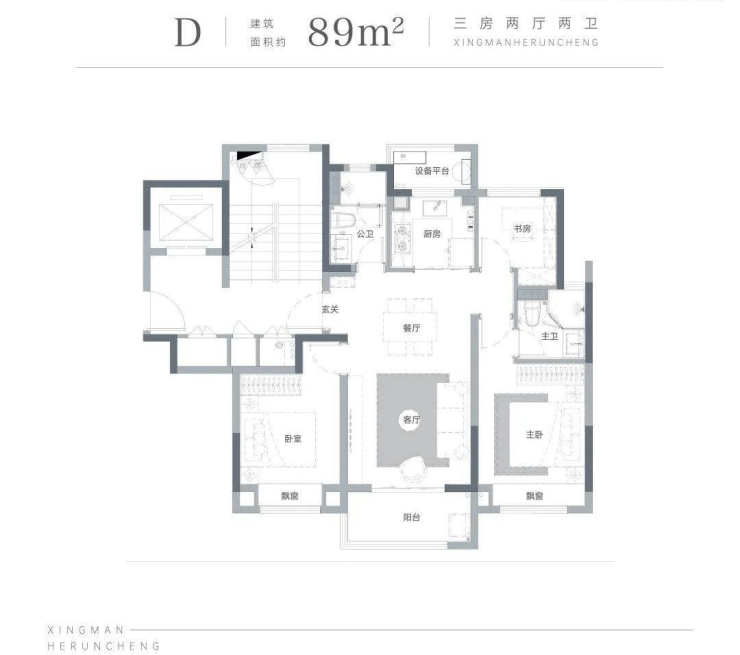 面积:高层:共16幢,建面约89㎡、105㎡、125㎡
