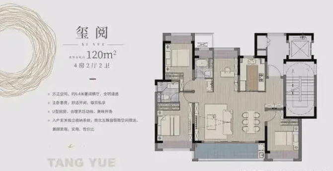120㎡洋房:4室2厅2卫,均价约15000元/㎡,总价180万起