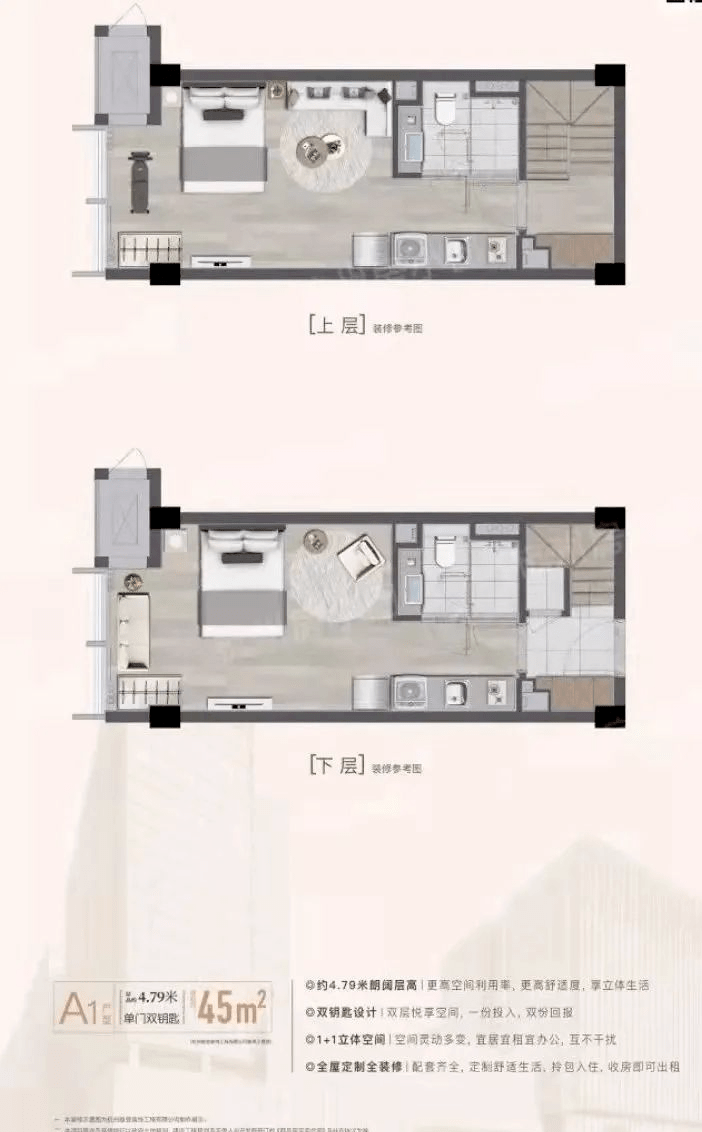 双钥匙溢价:4.79米层高+双独立入户设计,租金7000元/月起,投资回报率超5%