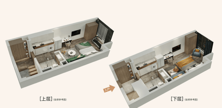 主力户型:43㎡双钥匙LOFT(上下双层独立入户),部分房源含全景落地窗,精装交付,首付69万起