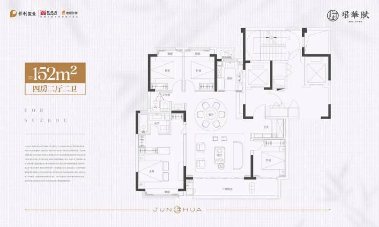 保利珺华赋销售中心地址400-998-3631✔✔建筑面积约222㎡四房三卫