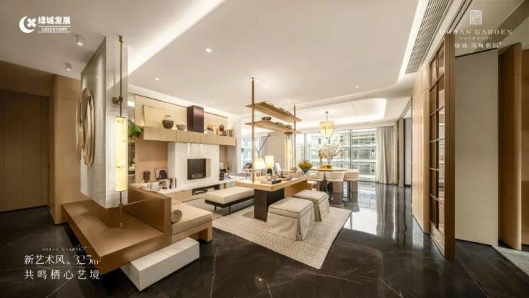 超阔横厅将园林绿意引入室内,厨房与家政系统无缝串联,全套房配备智能卫浴,更升级了AXENT恩仕智能温泉SPA浴缸,每个角落都流淌着「大隐于市」的从容。