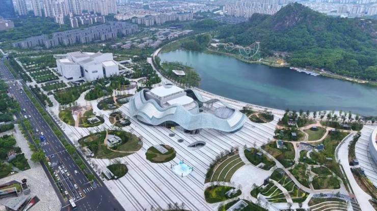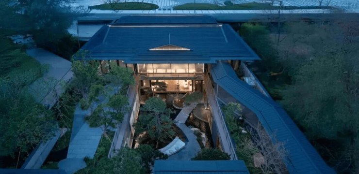 现代东方美学:提取苏式园林瓦片元素,铝板披檐设计,甄选天然石材与铝板线条组合