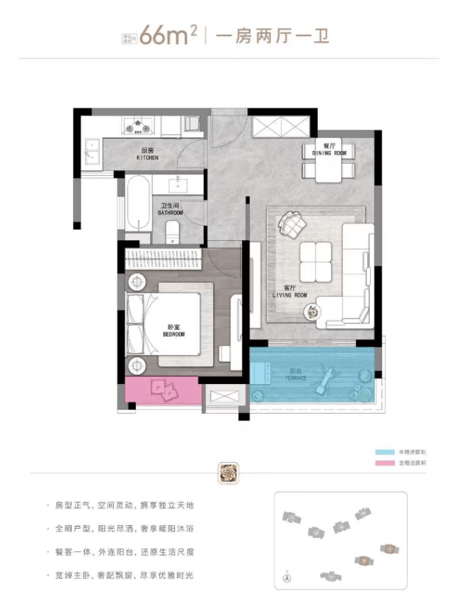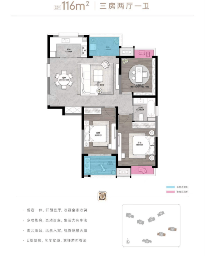 主力户型:66㎡(一居)、116㎡/125㎡(三居)、144㎡(四居)