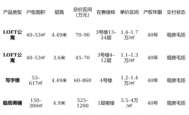 去化率 :整体约 75% ,LOFT公寓热销,写字楼中高区仍有空置,可议价