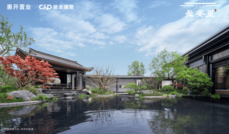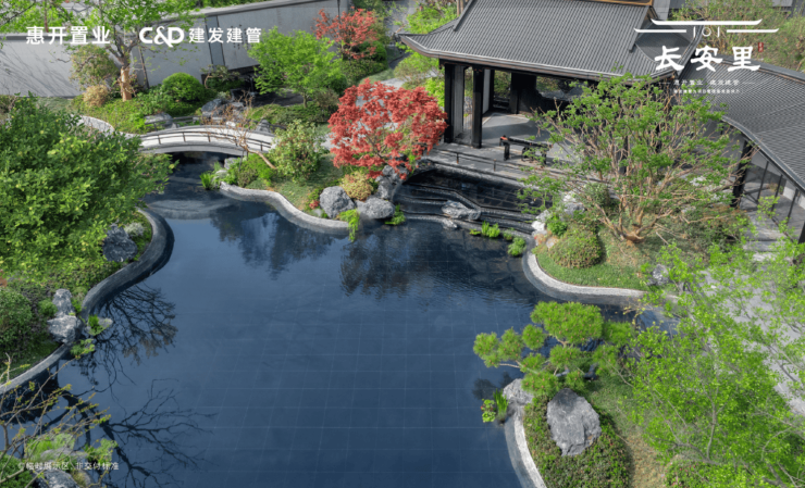 建发长安里东临白屈港生态河道,北接西漳公园、吴文化公园,周边生态环境优越,推窗即可见绿。项目内部还规划了中式禅意园林,水景、步道、休憩亭台等景观元素一应俱全,为居民提供了一个宁静、舒适的居住环境。
