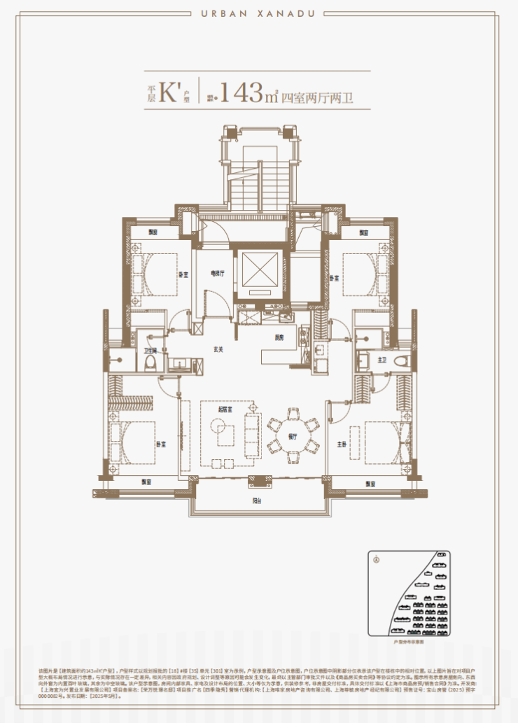建面约139–143㎡四房两厅两卫叠墅(上中下三叠,私享地下空间+屋顶露台,270°全景飘窗)