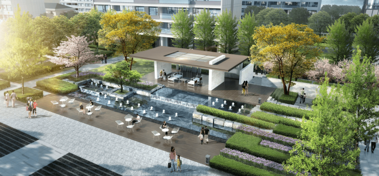 社区配建 5处会客厅+儿童乐园+长者活动区+健身步道 ,绿化率37%,打造“一轴三院五组团”江南园林式景观,老人有处闲坐,孩子有地奔跑。