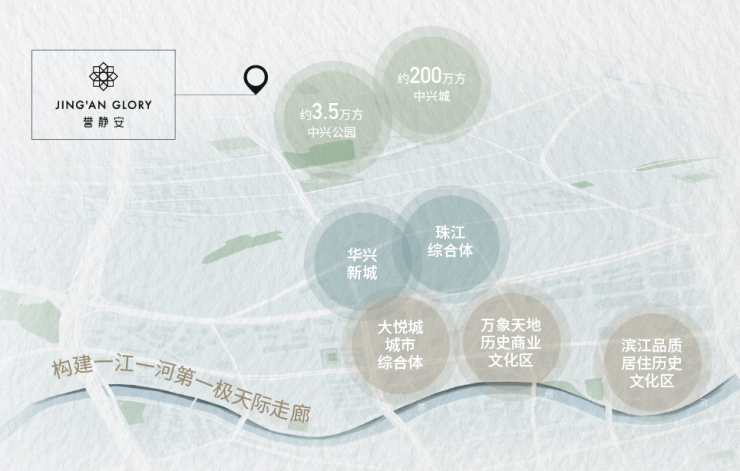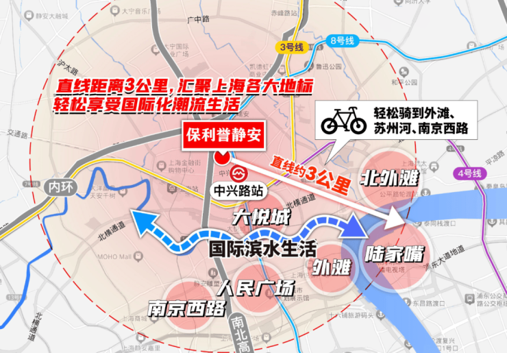 而项目到外滩和平饭店的直线距离正好是约3公里!妥妥的城心烫金地段!
