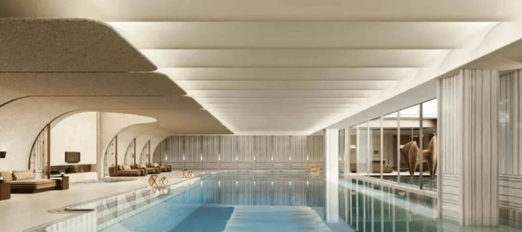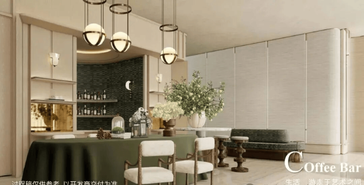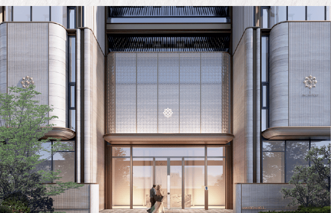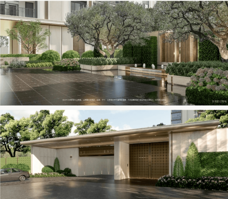 项目打造现代海派风格的外立面,线条简洁大气; 社区规划六重生活体验空间,从酒店式落客入口、镜面水庭到美学花园,旨在将高端酒店的奢享基因融入日常生活。