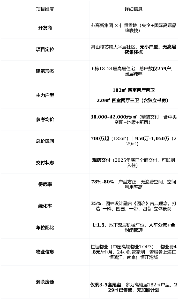 💡 购房提示 :狮山核心区大平层土地已多年未出让,仁恒澜庭雅致是苏州主城 最后可购的纯正大平层社区 ,现房即享,无需等待,适合追求“一步到位、圈层纯粹、资产保值”的高净值家庭。