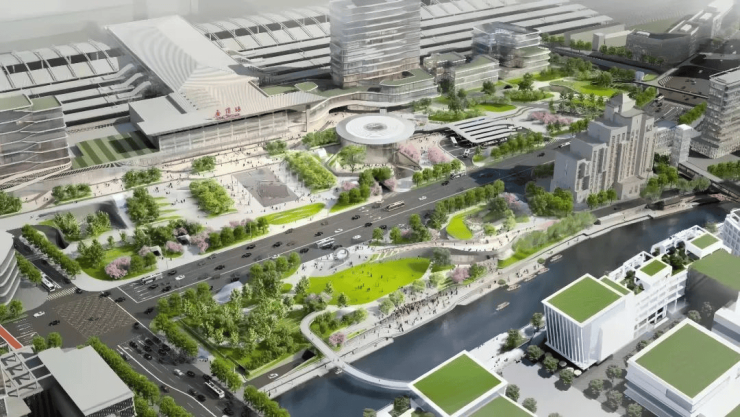 此外,无锡火车站南广场5万㎡站前广场,也在进行紧锣密鼓的更新施工。根据项目总体规划,将按照“一核一带三片区五节点”的结构布局,通过“留改拆”方式,对广场景观改造、建筑重塑、地下室改扩建、运河沿线提升等方面进行更新。