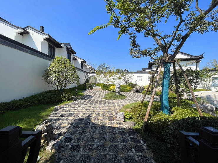 合院采用“白墙黛瓦+玻璃幕墙”现代中式风格,层高3.3米(一楼),地下室5.7米可自由分割