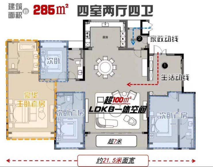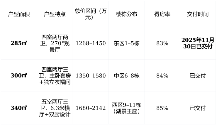 户型全为大平层:建面285㎡–340㎡,无小户型干扰