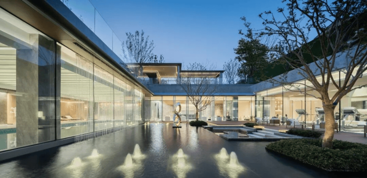 交付标准:精装交付,配备地暖、新风、中央空调“三大件”,外立面采用铝板 + 石材,呈现现代简约风格。