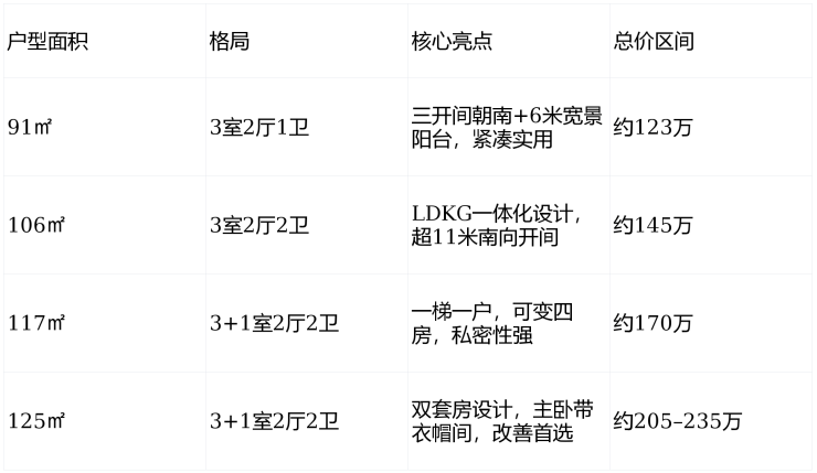 总价区间:123万–280万,覆盖刚需到改善全客群