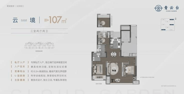空中庭院:偶数层户型客厅联通19-25㎡空中庭院,7.2米北向阳台