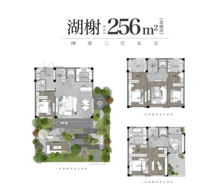 空间设计:联排得房率超85%,280㎡户型配备双首层设计,地下车库直通北庭院。