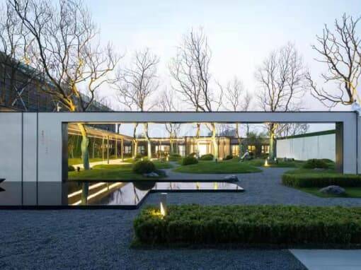 后场中庭利用景观砾石打造林下休闲空间,风雨连廊组织人行流线