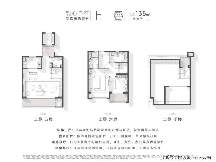 户型鉴赏:产品户型建面约118-173㎡,下叠及中叠均自带院子,上叠配有阁楼露台,全南向,并且做到了独门、独院、独梯,极尽尊贵。