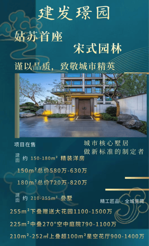 在售产品 :建面约 190–255㎡ 的四代宋风叠墅,及 150–180㎡ 臻境洋房