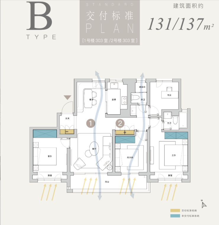 四居室:131平方米(4室2厅2卫)、137平方米(4室2厅2卫)、142平方米(4室2厅2卫)、185平方米(4室2厅3卫)
