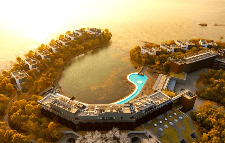 项目坐落于苏州唯一的国家级5A级旅游度假区——阳澄湖半岛,三面环湖,形成“水中孤岛”的私密谧境,生态资源稀缺。