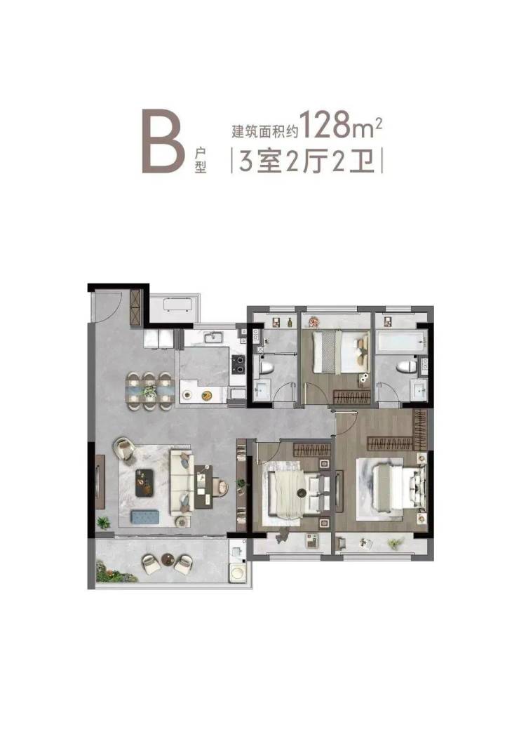 【建面128㎡3居】300.0-330.0万-分布于2号楼 1号楼 4# 8# 等,2梯4户,层高3.00米,总楼层24-26F