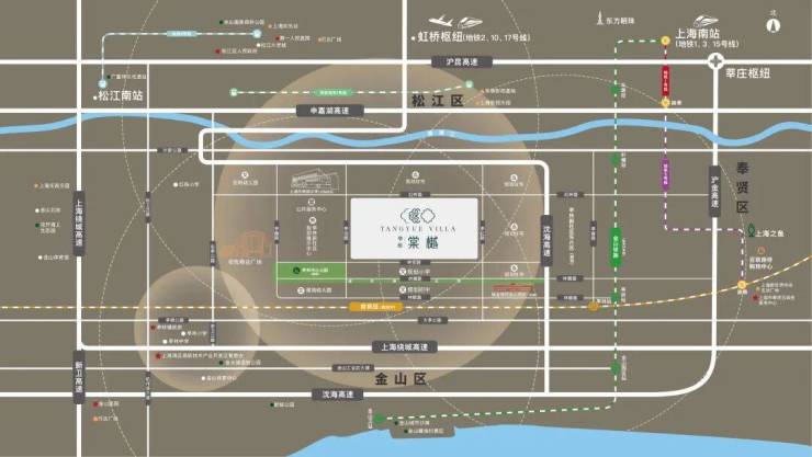 S36亭枫高速、G15沈海高速环绕,15分钟达金山万达,25分钟抵金山新城,40分钟到陆家嘴,50分钟到虹桥。