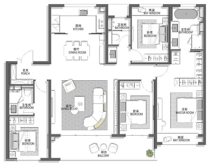 4.得房率:高达84-86%,空间利用率高。