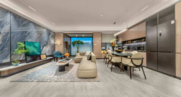 超宽横厅设计,这里会是一场奢阔的社交空间,与好友推杯换盏,依旧谈笑风生的自在;也可以是亲子欢乐场,互动、游戏,非凡气度皆凸显无遗。