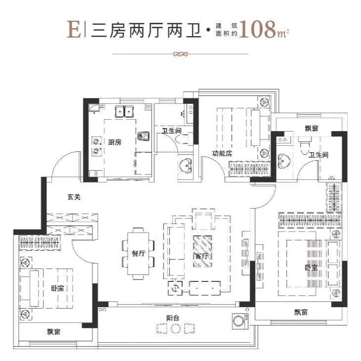 四居:建面约108㎡、129㎡(餐客一体,动静分区)