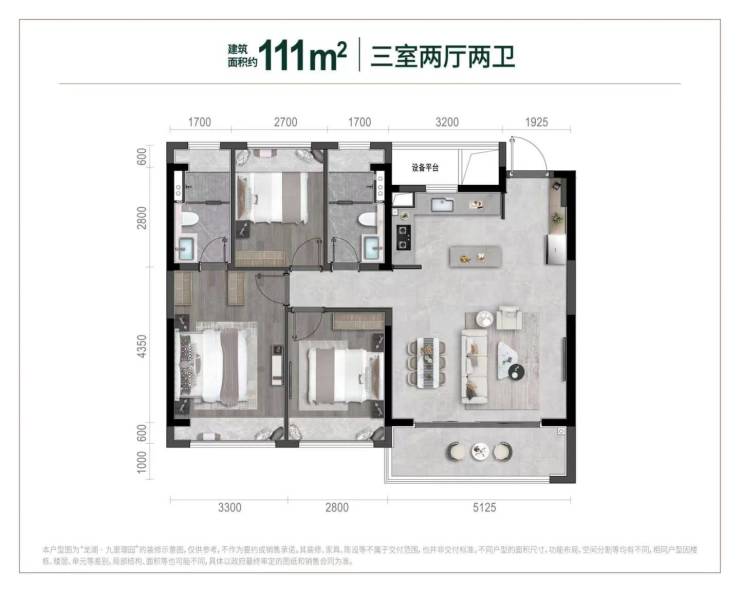 【建面111㎡3居】280.0-315.0万-分布于9# 10# 11# ,2梯4户,层高3.00米,总楼层23-26F
