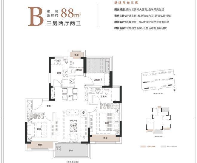 建筑面积:88平米(三房两厅两卫)