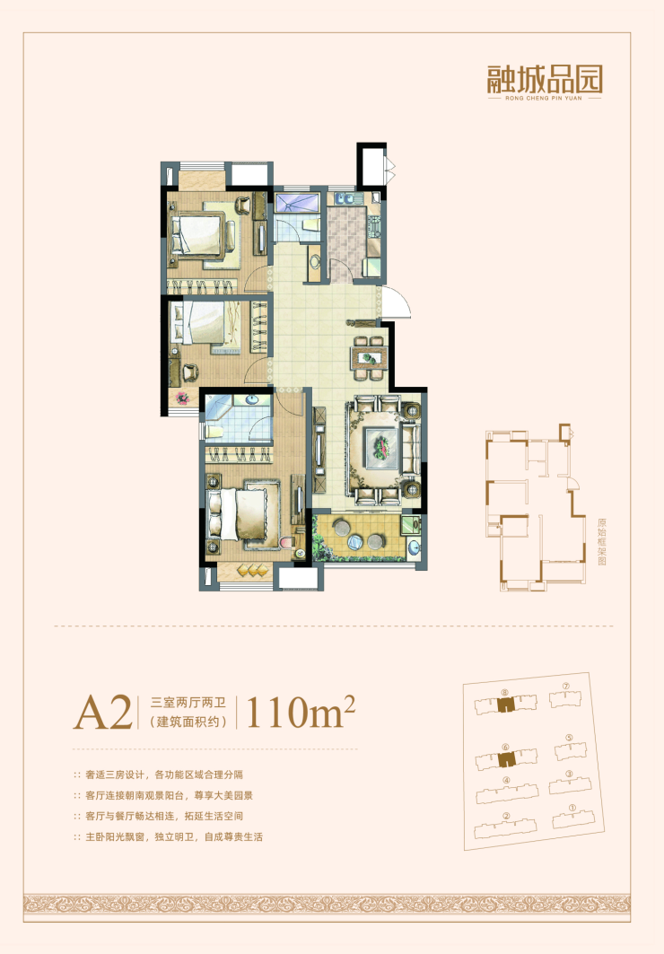 110㎡ 三室两厅两卫:边套设计,采光优越,主卧套房布局