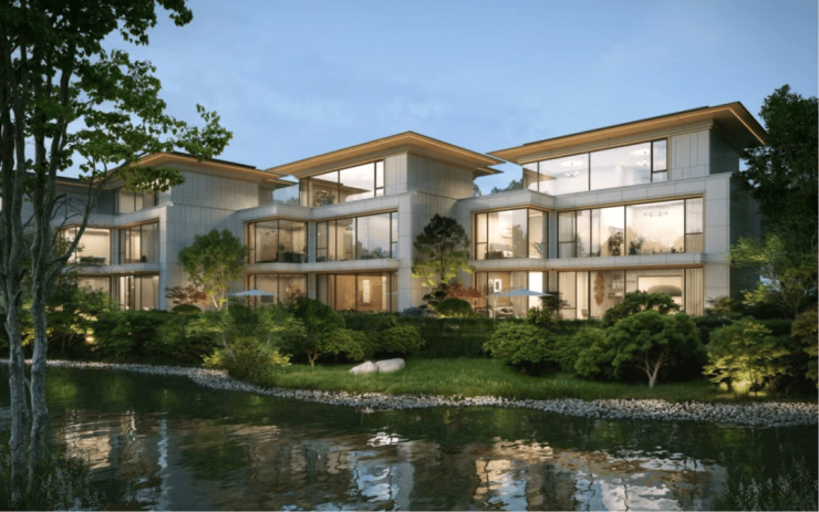 滨水排屋:建面约192–260㎡,毛坯交付,总价750万起,得房率高达98%,赠送地下双层空间与私家庭院(40–100㎡)