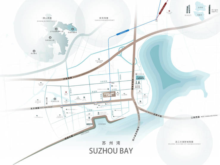 配套类型名称距离状态大型商业吴中永旺梦乐城2.5公里已运营iD Park歌林公园1.5公里已运营苏州湾中心广场1.8公里已运营在建商业橙天里(地下商业)1公里在建悠方商业综合体3公里在建JW万豪酒店2.8公里在建社区底商吴郡睦邻坊、品汇左岸500–800米已运营特色街区七子水街1.2公里已运营