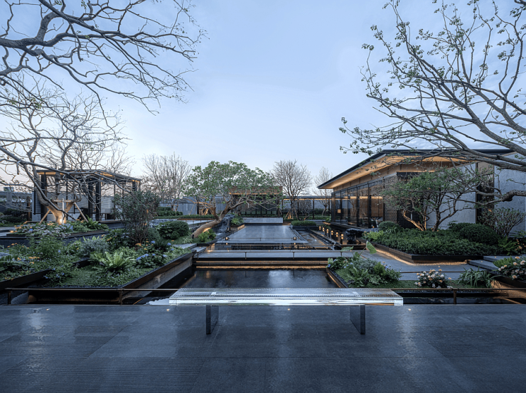 “苏州园林式”归家动线“一带一路三堂”景观体系中央水景+曲径回廊+休憩亭台,东方美学氛围浓厚