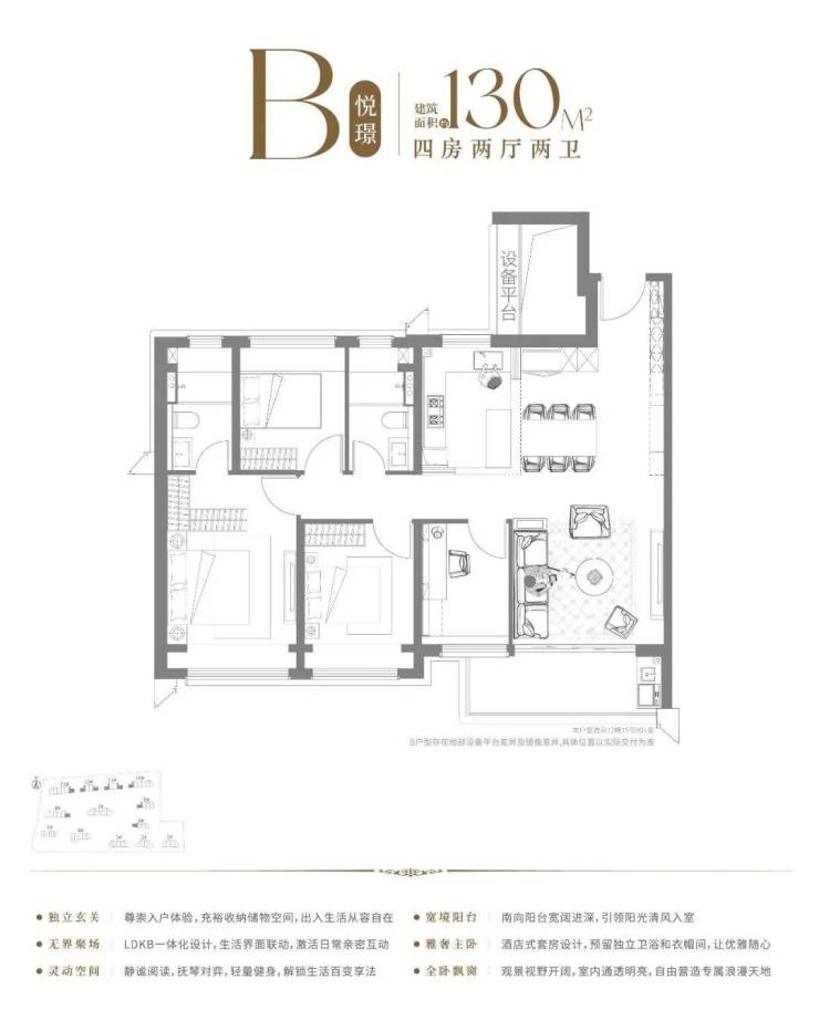130㎡四房四开间朝南,独立玄关,主卧套房+双台盆卫浴,客厅面宽超5.2米,空间尺度媲美改善洋房