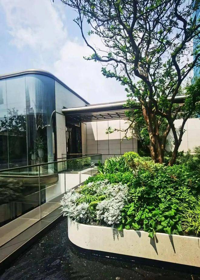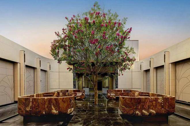海派光厅之外归家迎宾树木,更是由设计师辗转多个城市才寻到,树龄超60年福木“紫薇”!