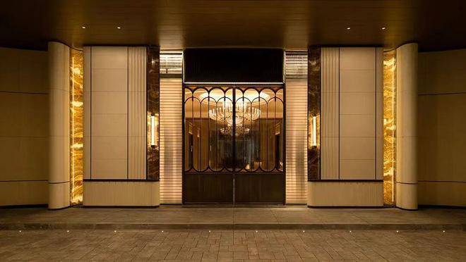 门庭延街外立面,以精工定制弧形米色石材为主调!镶嵌典藏级老虎玉大理石,点缀古铜色现代海派艺术感灯器,整体呈现出百年海派贵雅气质!