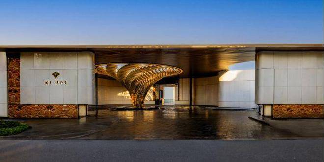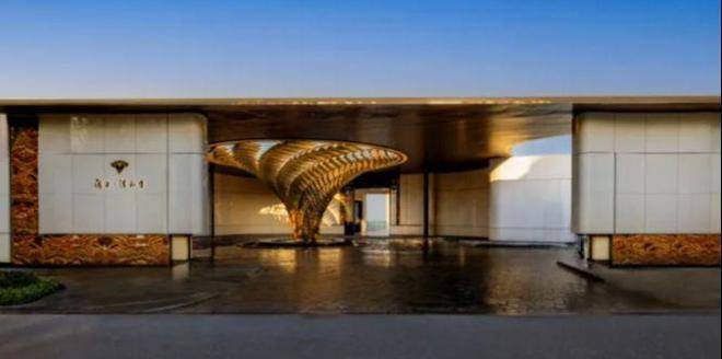 建筑采用现代海派风格,外立面以香槟金色格栅塔冠与“金镶玉”造型为特色,搭配大面积玻璃与金属飘板,营造公建化视觉效果。社区内规划中央景观轴线、双下沉式庭院及约2000㎡会所,涵盖星空顶泳池、私宴厅、室内高尔夫等设施。