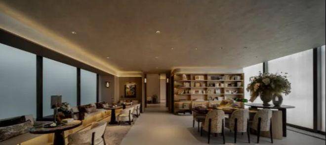 在场域设计中,空间展开成星级酒店式!可社交中央场所,访客和业主可实现无界会所观赏和交互!