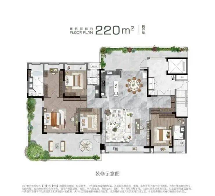作为苏州主城首个纯四代住宅,蠡棠森屿的空中庭院设计彻底改变了传统居住模式。以185㎡户型为例: