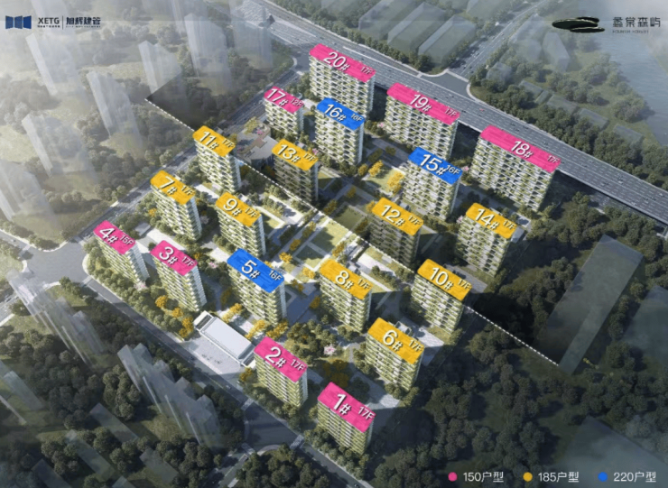 户型配置:约150㎡、185㎡、220㎡,户均约33-77㎡空中庭院