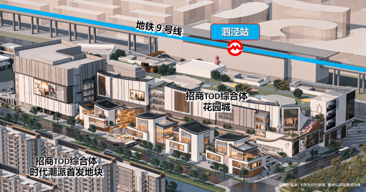 作为9号线泗泾站新一代超级TOD,招商时代潮派 与地铁商场直线仅约200米。