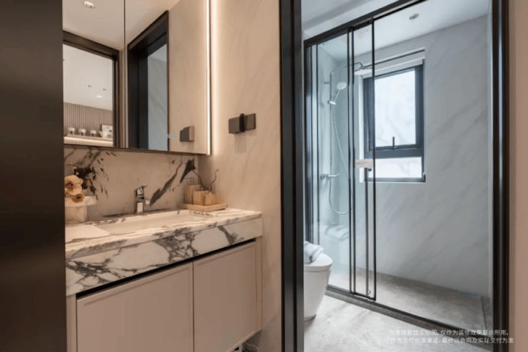 第四,在以上这些极为能打的优势下,央企招商蛇口,还为业主带来了一线品牌的三件套+科勒、高仪或同等品牌的精装(每套房屋具体交付标准以该户买卖合同约定为准),甚至就连洗碗机、末端净水、线性凉霸、电视背景墙、美妆冰箱(主卫)您能想到的一切,几乎都给您配备上了。